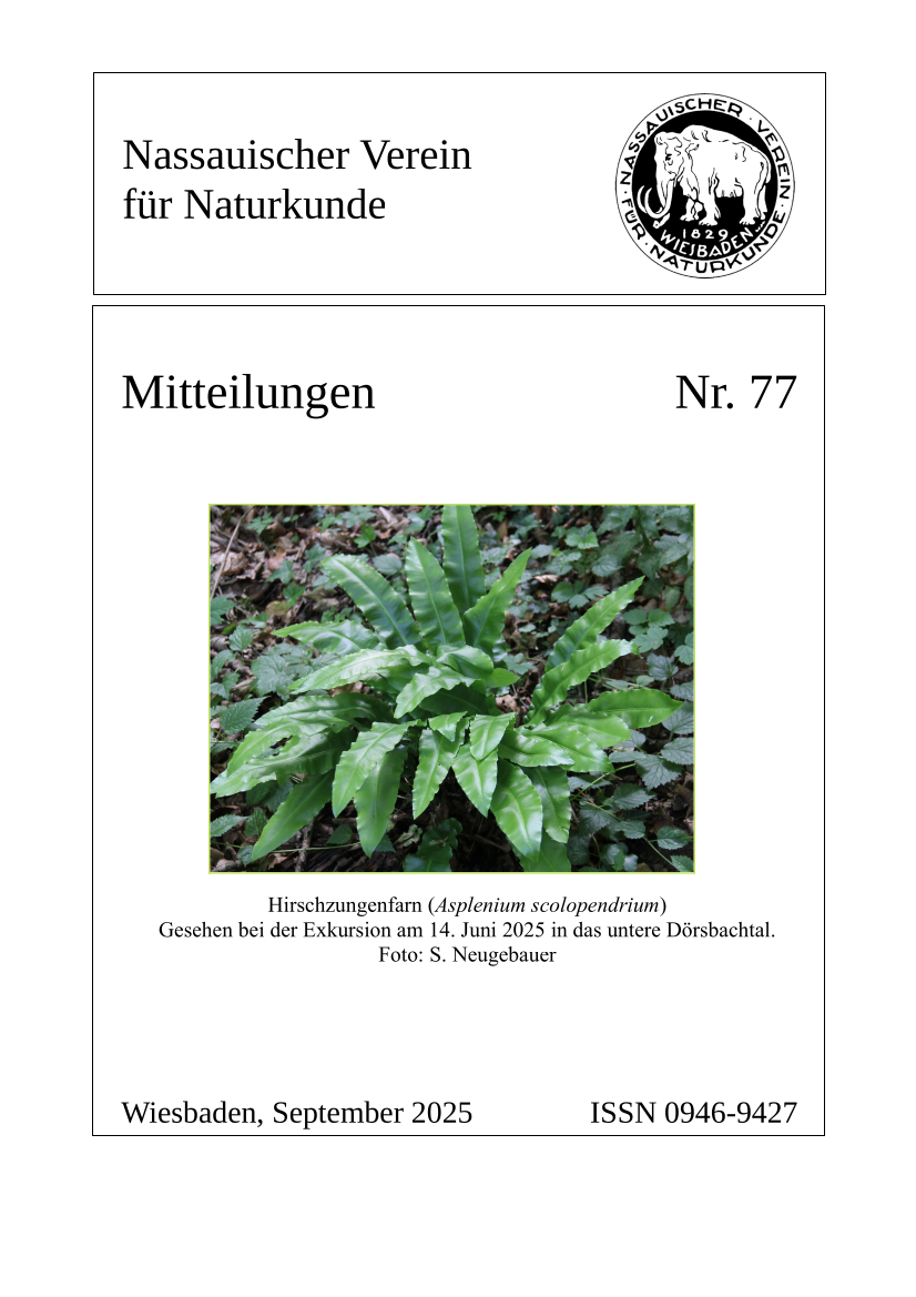 Band 145 der Jahrbücher des Nassauischen Vereins für Naturkunde ist erschienen.