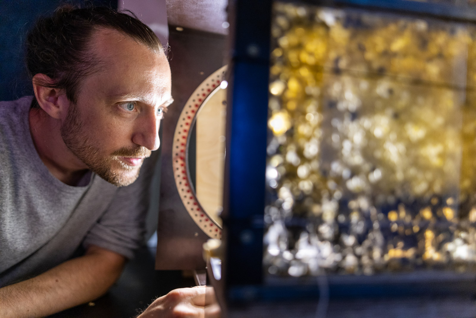 Abbildung: Der Biologe Paul Siefert studiert am Bieneninstitut in Oberursel das Verhalten der Honigbienen. Foto: Jan Bosch